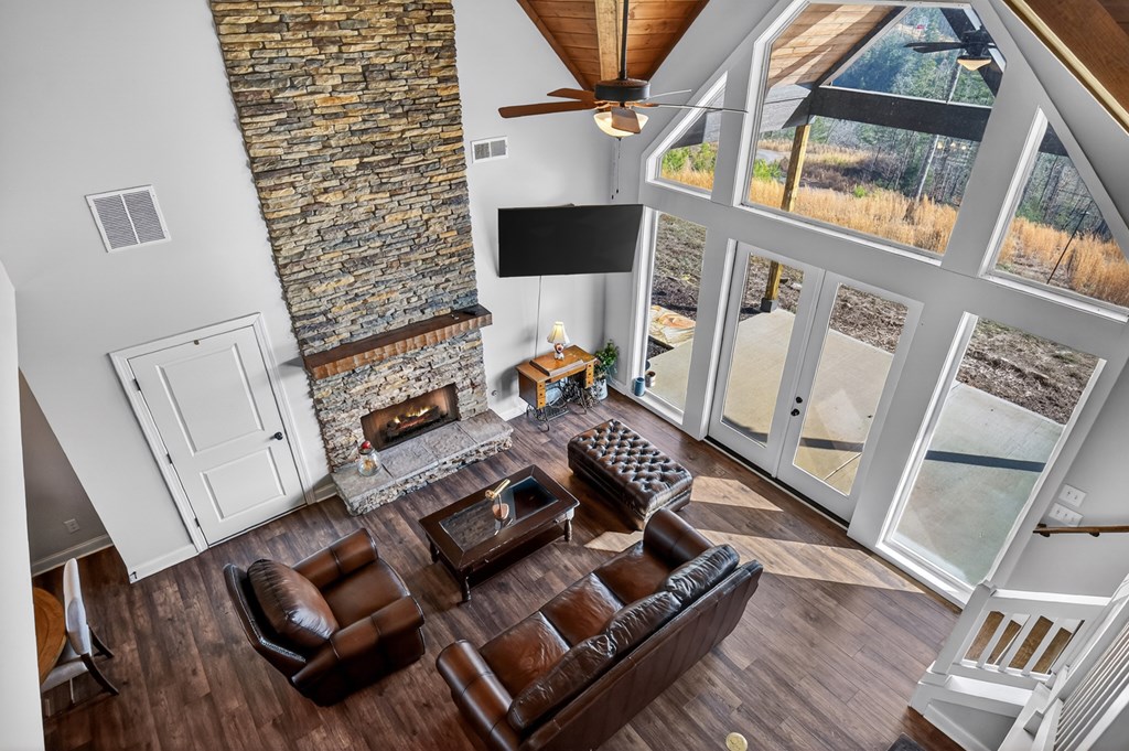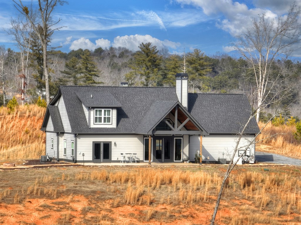Situated in the gated High River community of Ellijay, this charming 2-bedroom, 2.5-bath mountain retreat offers the perfect blend of comfort, privacy, and breathtaking scenery. Built in 2022, the home features soaring cathedral ceilings and an open loft that, together, create a high-ceiling great room that perfectly combines the living area, dining space, and kitchen--excellent for entertaining or resting after a day in the mountains. The main-level primary bedroom features an ensuite bath with a tiled shower, a soaking tub, and tile flooring, while a convenient half bath is located just off the great room. Plantation shutters adorn every window, adding timeless style and privacy throughout the home. Step outside to enjoy long-range mountain views from the rocking-chair front porch or unwind on the concrete patio off the back door, complete with stunning mountain vistas and a fire pit perfect for cool nights beneath the stars. A double garage delivers ample storage and convenience. High River residents enjoy community access to Mountaintown Creek--one of Gilmer County's premier trout streams--making this an exceptional location for nature lovers and outdoor enthusiasts. The association allows rentals, offering excellent potential as a full-time residence, second home, or investment property. Mountain views, gated privacy, and creek access--this is North Georgia living at its best.
