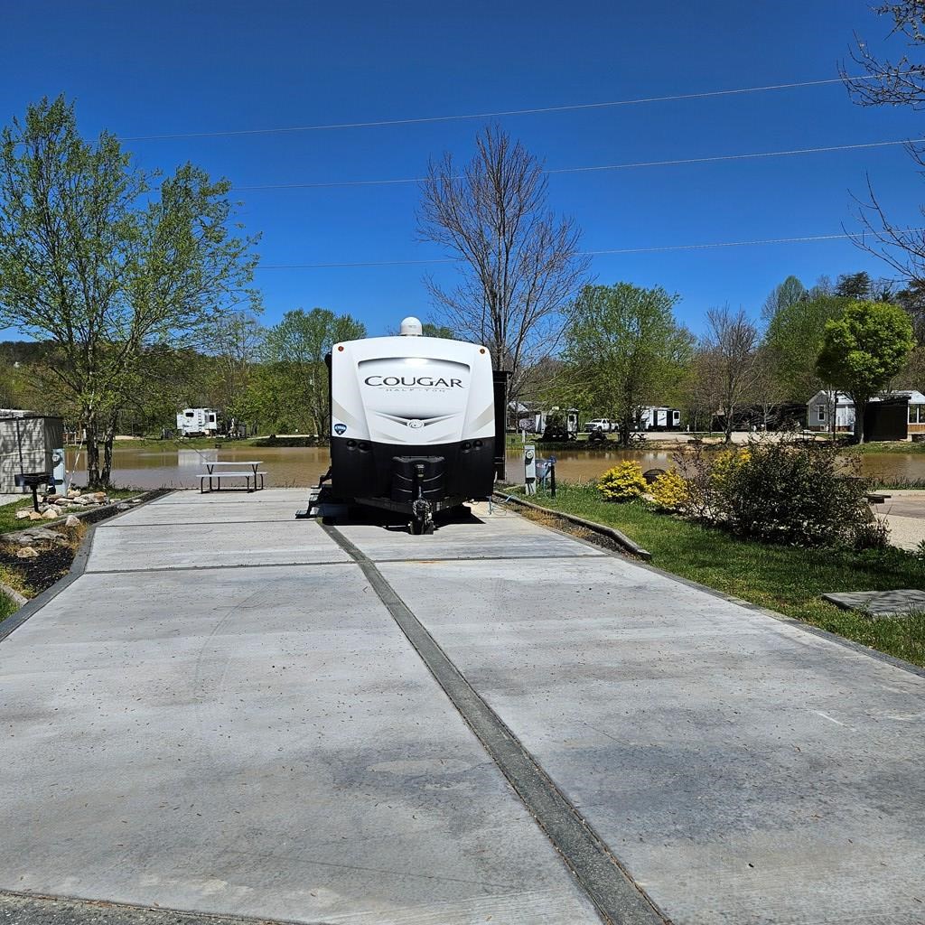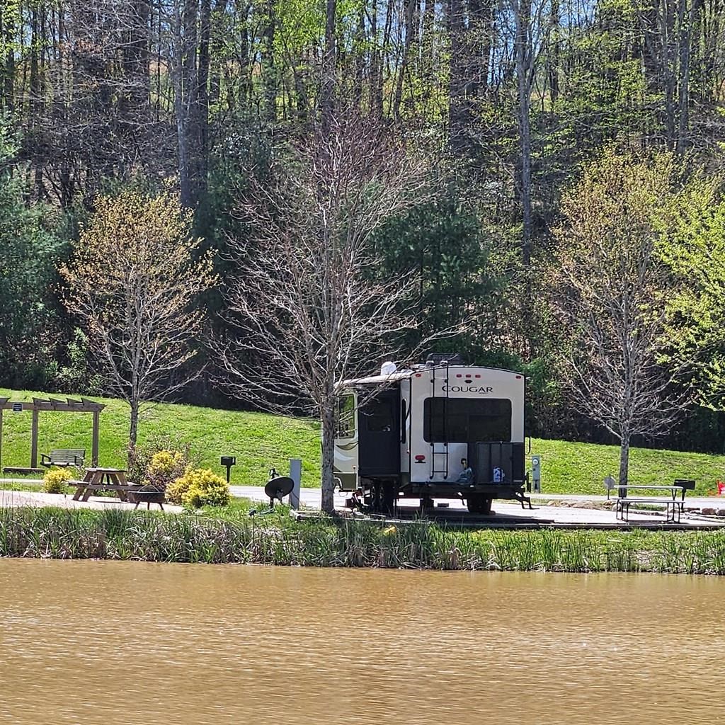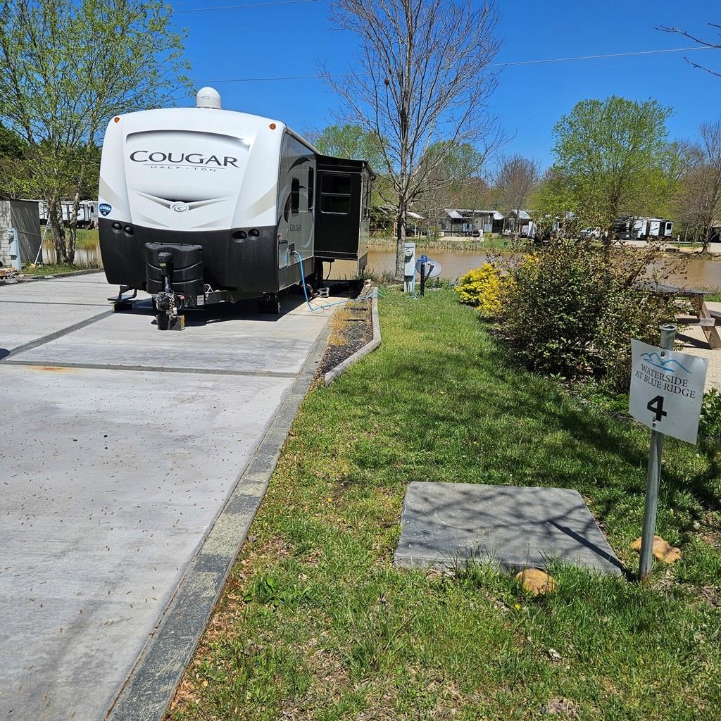 Lakefront lot at Waterside of Blue Ridge. This RV lot, with a like-new "Cougar by Keystone," provides an ideal location for your mountain getaway at an affordable price. All paved road access and ample RV parking on the paved lot. This waterfront view is just what you have been looking for! A fire pit and camp grill are ready for use on this lot. Located within a gated community, enjoy amenities such as a Community Pool, Playground, Waterfront Clubhouse, Laundry Facility, Wood Fired Pizza Oven, Fire Pits, Stocked Community Lake, Disc Golf & Basketball, Surrounded by the Chattahoochee National Forest, Hot Tub, and community access to the onsite creek, and onsite maintenance. It is a perfect spot for your RV, which can be left on the lot full-time or rented out for extra income when it is not in use. The peaceful and serene Waterside of Blue Ridge is a great place to unwind and go for a stroll with your pets. Fiber internet is available! A true RV destination in the North Georgia Mountains!