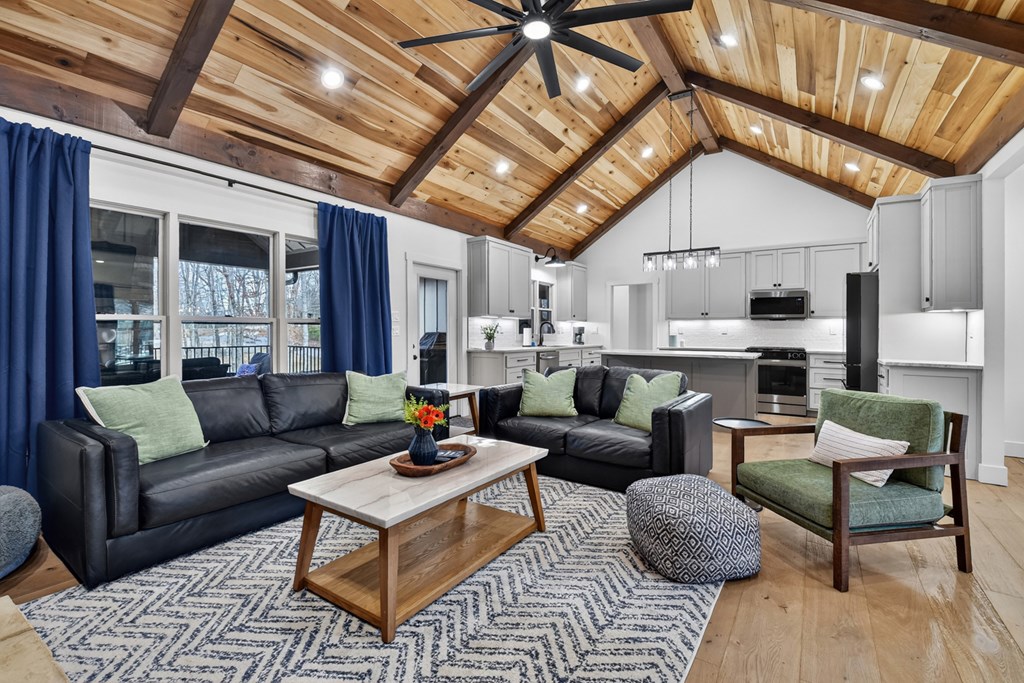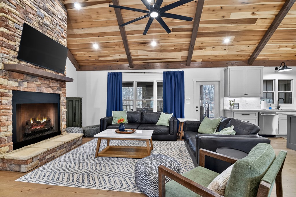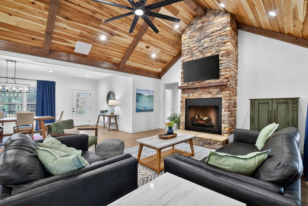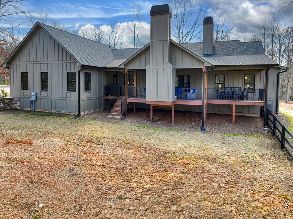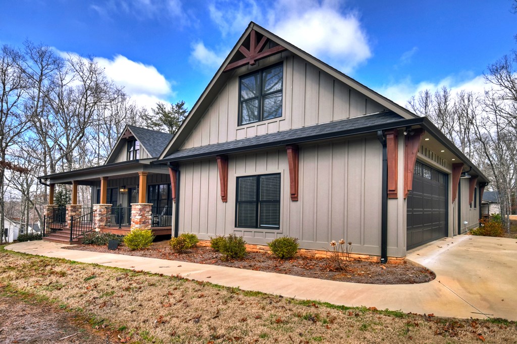 Welcome to this stunning Craftsman home, perfectly situated just minutes from town. Set on a level, one-acre lot, this spacious 4-bedroom, 3.5-bath residence offers both comfort and style, with a fenced backyard ideal for relaxing or entertaining. Step inside to discover a thoughtfully designed open floor plan that seamlessly blends the living room, dining area, and kitchen beneath soaring cathedral ceilings. The wood-clad ceiling with decorative beams and the rock-faced gas fireplace create a warm, inviting space that's perfect for entertaining. The main bedroom is generously sized and features a striking wood accent wall and cathedral ceiling. At the same time, the luxurious en-suite bathroom boasts dual vanities, a soaking tub, and a tiled shower with multiple shower heads. The kitchen is a chef's dream, featuring granite countertops, stainless steel appliances, a gas stove, a large island, and a walk-in pantry. Just off the kitchen, a convenient half bath is easily accessible. The laundry room and extra storage are located near the double-car garage, which includes an EV charger. Above the garage, there's a full guest suite with its own living area, full bathroom, walk-in closet, and attic storage. On the opposite side of the home, two additional bedrooms also feature cathedral ceilings, walk-in closets, and beautiful wood accents. They share a well-appointed bathroom with a double vanity and a separate shower room--perfect for sharing. Enjoy outdoor living on the expansive covered deck, complete with a wood-burning fireplace (with gas starter), a large hearth, TV, and dining area. The backyard is fenced, but your property extends even further, providing plenty of room to play or garden. The exterior features classic board-and-batten siding, iron railings, and stained decks. Additional highlights include a buried propane tank and a paved driveway leading up to the home. This well-appointed Craftsman could be your forever home.