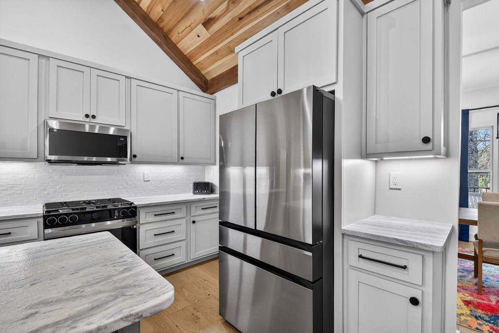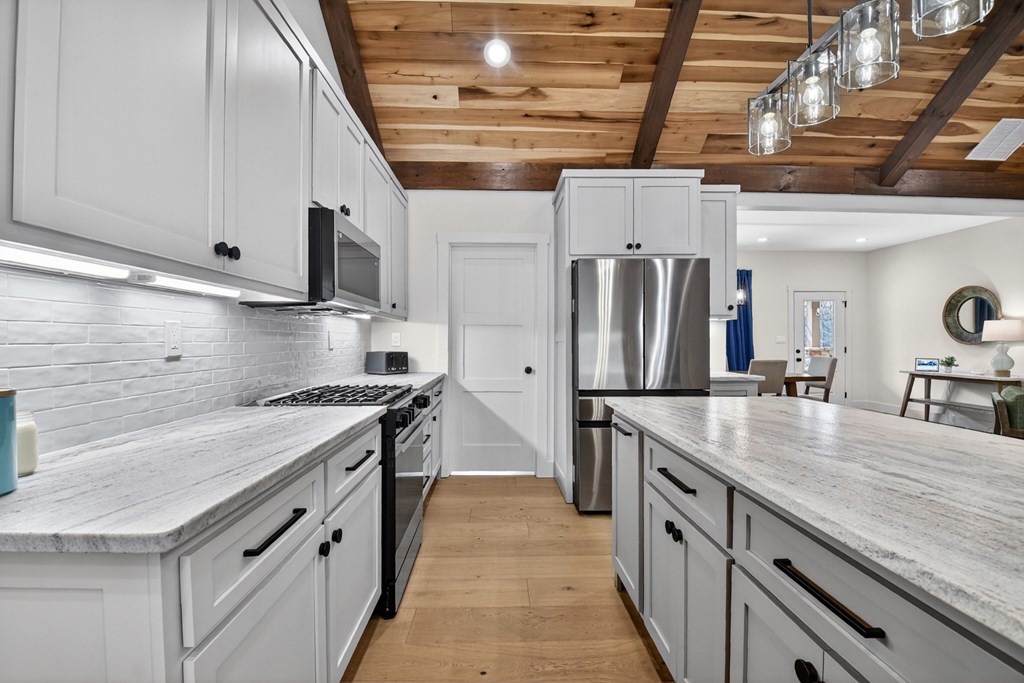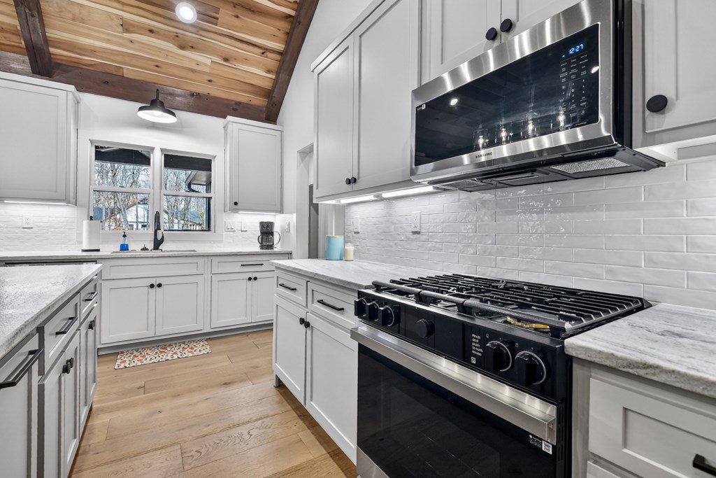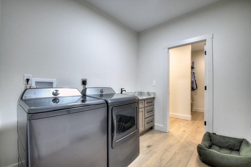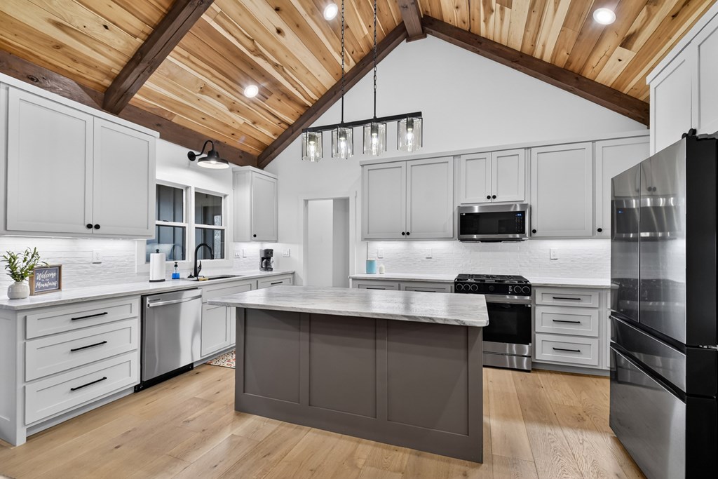 Welcome to this stunning Craftsman home, perfectly situated just minutes from town. Set on a level, one-acre lot, this spacious 4-bedroom, 3.5-bath residence offers both comfort and style, with a fenced backyard ideal for relaxing or entertaining. Step inside to discover a thoughtfully designed open floor plan that seamlessly blends the living room, dining area, and kitchen beneath soaring cathedral ceilings. The wood-clad ceiling with decorative beams and the rock-faced gas fireplace create a warm, inviting space that's perfect for entertaining. The main bedroom is generously sized and features a striking wood accent wall and cathedral ceiling. At the same time, the luxurious en-suite bathroom boasts dual vanities, a soaking tub, and a tiled shower with multiple shower heads. The kitchen is a chef's dream, featuring granite countertops, stainless steel appliances, a gas stove, a large island, and a walk-in pantry. Just off the kitchen, a convenient half bath is easily accessible. The laundry room and extra storage are located near the double-car garage, which includes an EV charger. Above the garage, there's a full guest suite with its own living area, full bathroom, walk-in closet, and attic storage. On the opposite side of the home, two additional bedrooms also feature cathedral ceilings, walk-in closets, and beautiful wood accents. They share a well-appointed bathroom with a double vanity and a separate shower room--perfect for sharing. Enjoy outdoor living on the expansive covered deck, complete with a wood-burning fireplace (with gas starter), a large hearth, TV, and dining area. The backyard is fenced, but your property extends even further, providing plenty of room to play or garden. The exterior features classic board-and-batten siding, iron railings, and stained decks. Additional highlights include a buried propane tank and a paved driveway leading up to the home. This well-appointed Craftsman could be your forever home.