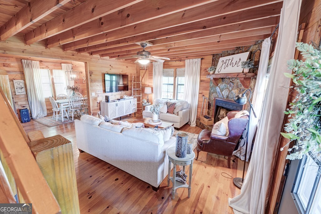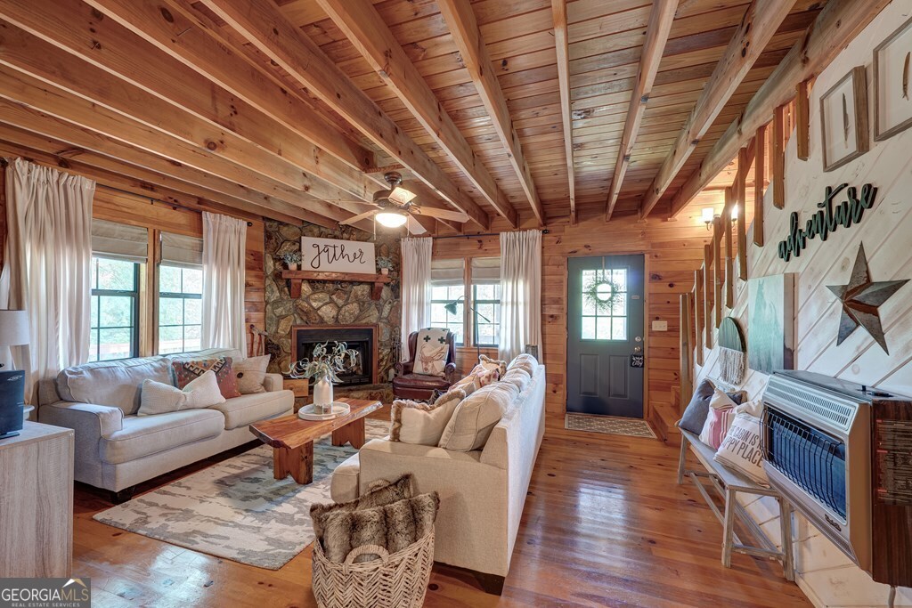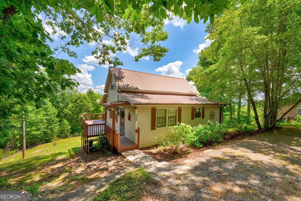 Reduced!!!!! Are you looking for a charming Mountain View Cabin sold turnkey? This is your perfect home, getaway or short-term rental close to Blue Ridge and McCaysville! Step inside to find a beautifully furnished interior featuring a dining area, kitchen and spacious living area that boasts a rustic river rock fireplace. On the main level, you'll find a tranquil bedroom, a full bathroom, and convenient laundry facilities. Upstairs, the flexible space includes one queen and one double bed, set up as double loft bedrooms with a half bath and built-in storage. The gentle laying yard provides space for gardening and a place for your pets. Relax on the back porch and take in the mountain views that inspire peace and tranquility.